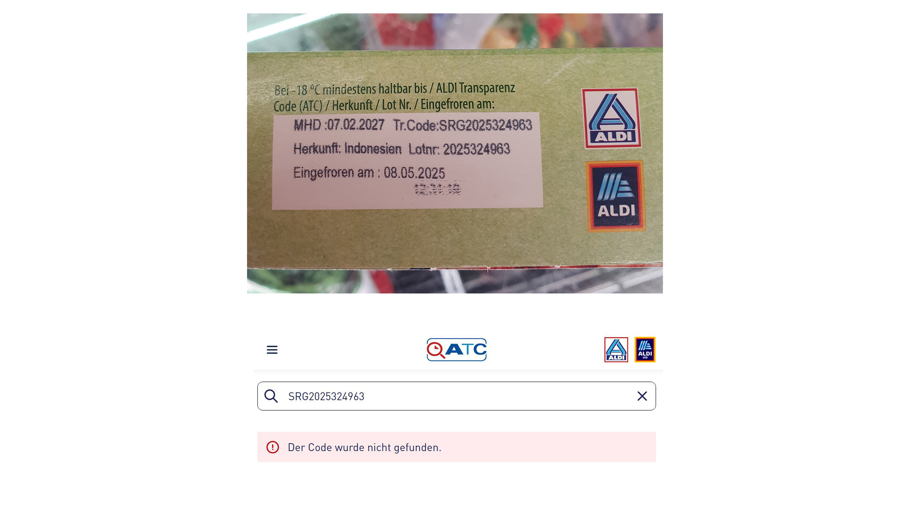 Aldi Transparenz-Code funktioniert nicht verlässlich
