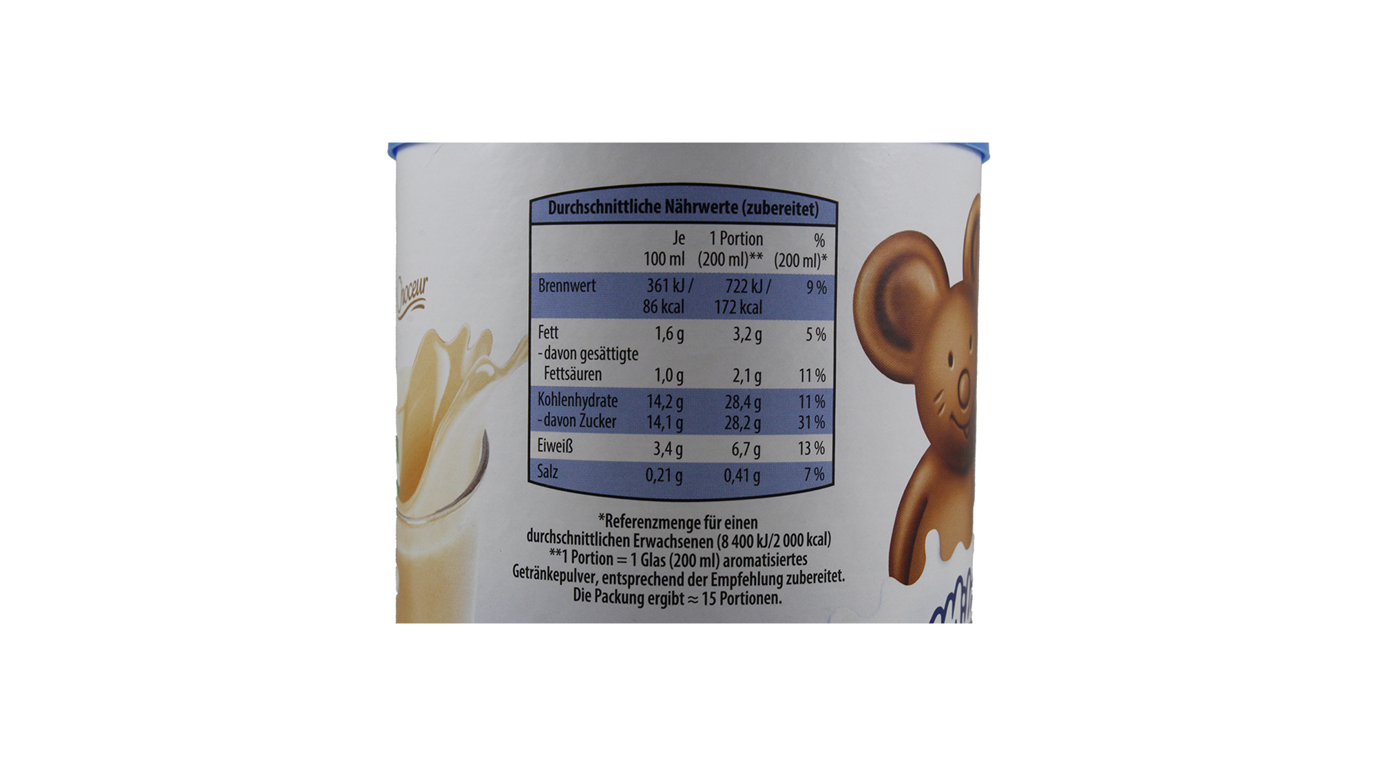 Abgebildete Haselnüsse in „Milch Mäuse“-Getränkepulver nicht enthalten
