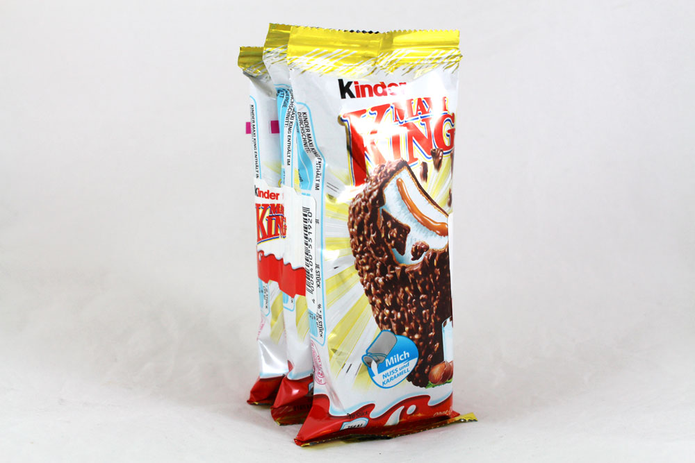 Der Hersteller bietet drei „Kinder Maxi King“ als Gebinde an. Ein blickdichter Klebestreifen verbindet die einzeln verpackten Riegel und überdeckt hierdurch die Nährwertangaben. Der Anbieter sollte eine andere Verpackungsform wählen, bei der die verpflichtenden Informationen wie die Nährwerte für Verbraucher gut sichtbar und lesbar sind.