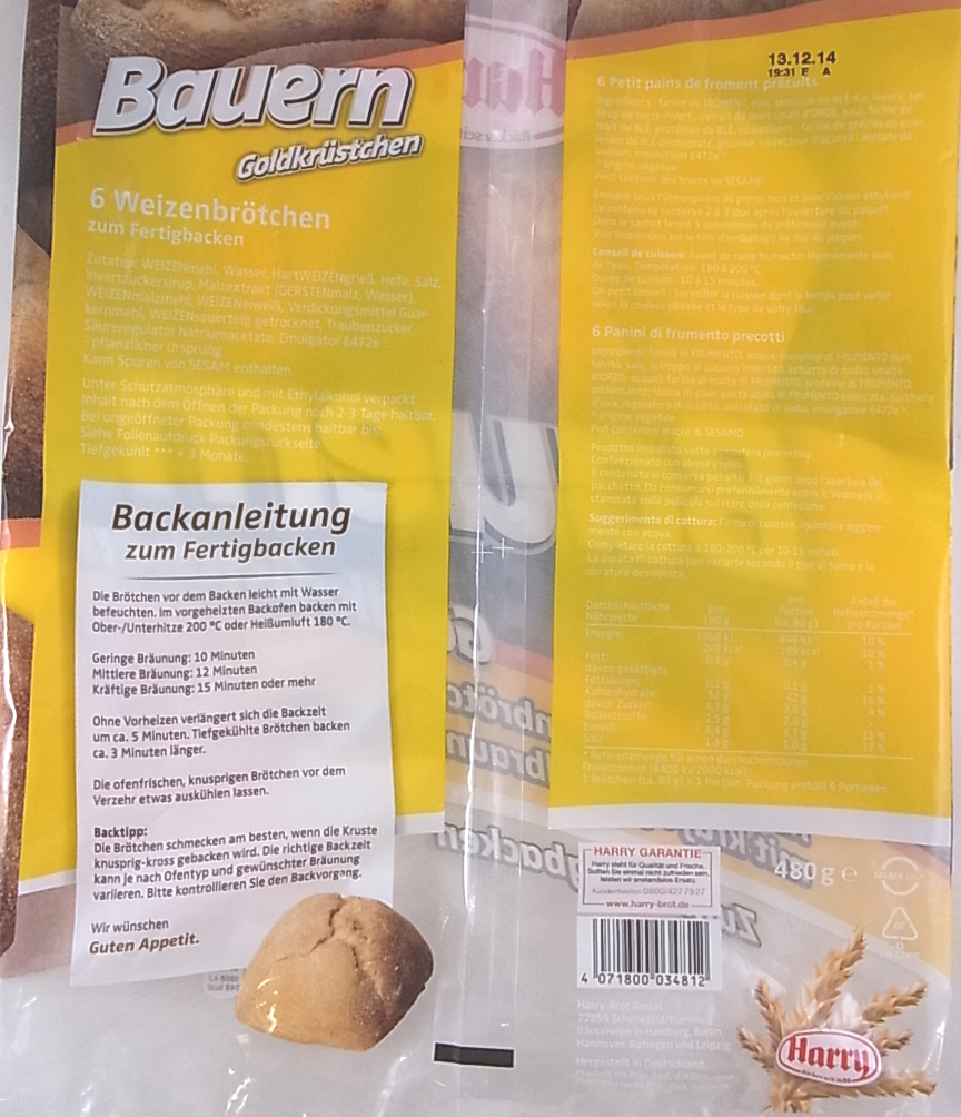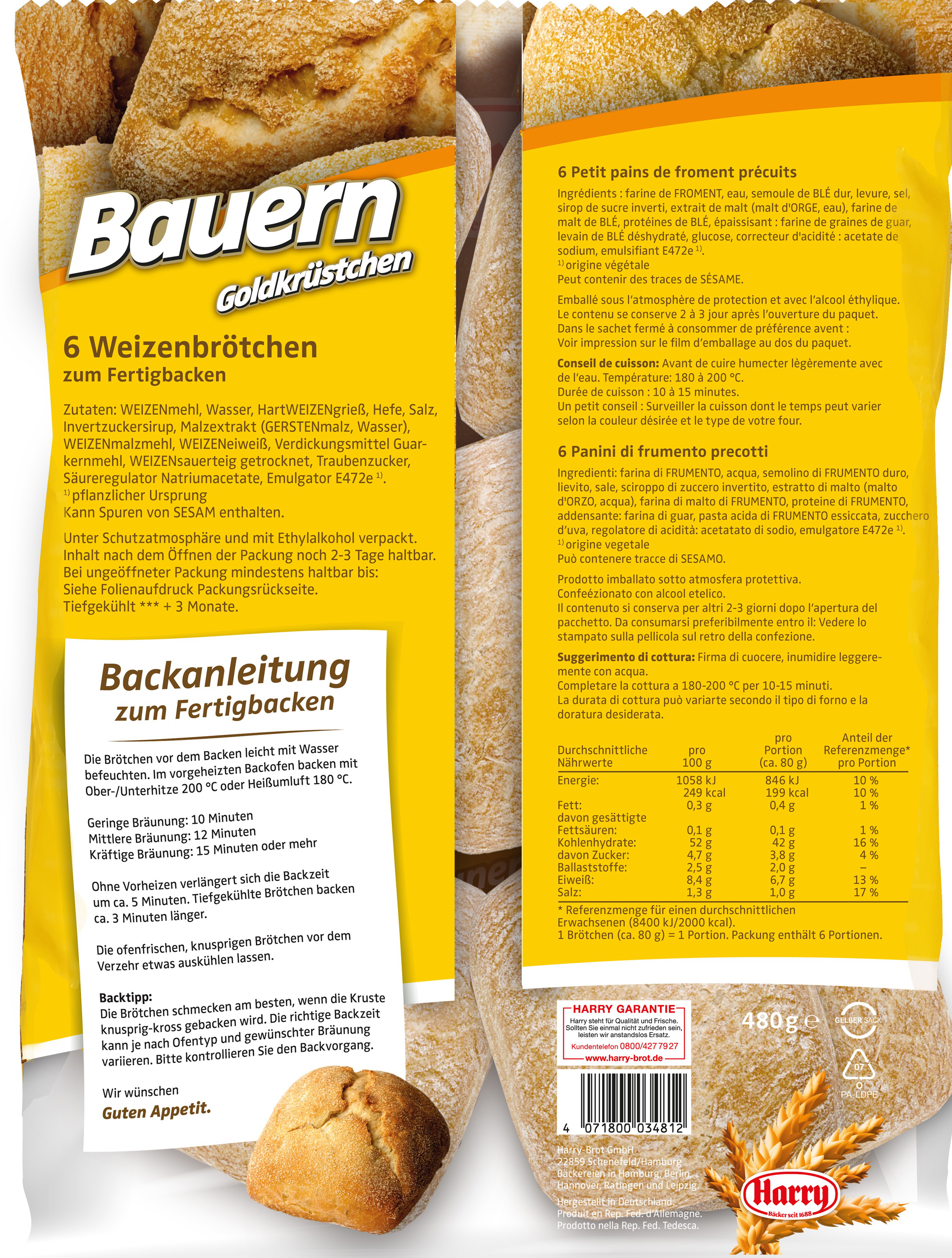 Bei der Entwicklung des Verpackungsdesigns für unsere neuen „Bauern-Goldkrüstchen“ war leider nicht abzusehen, dass im Druckergebnis der Folie die Rückseite nur mit Mühe zu lesen sein würde. Bereits vor dem Schreiben der Verbraucherzentrale haben wir neue Folie bestellt, bei der die Texte in braun gedruckt werden. Auf Grund der Feiertage zum Jahreswechsel wurde uns als schnellstmöglicher Einsatztermin die 4. KW 2015 genannt.