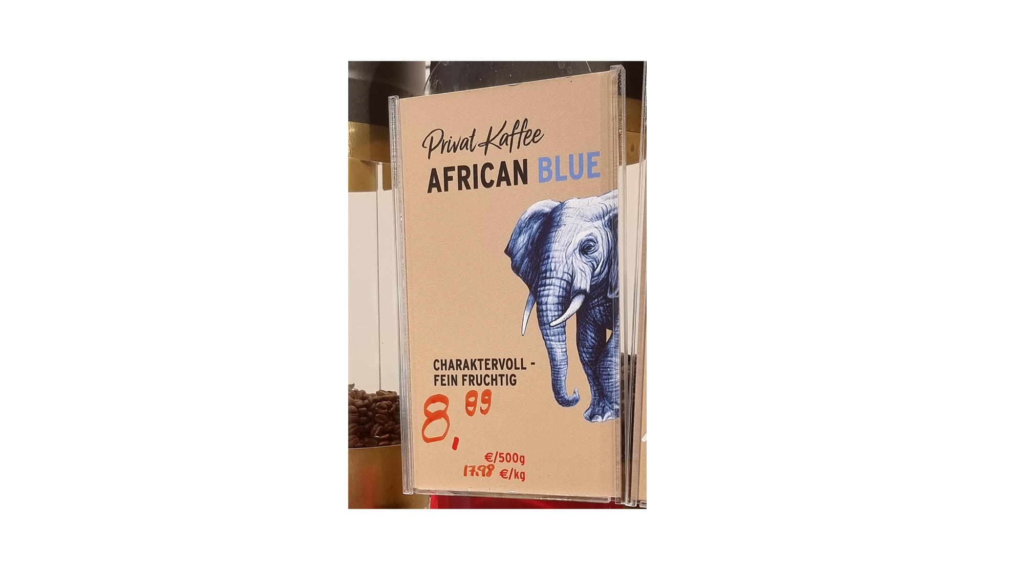 Tchibo hat regelmäßig einzelne Kaffeesorten im Angebot und bietet sie nochmals günstiger für Besitzer:innen der Tchibocard an. Am 24. Juli 2025 waren in der Tchibo Filiale in der Hasengasse in Frankfurt am Main die Kaffeebohnen „African Blue“ im Angebot.