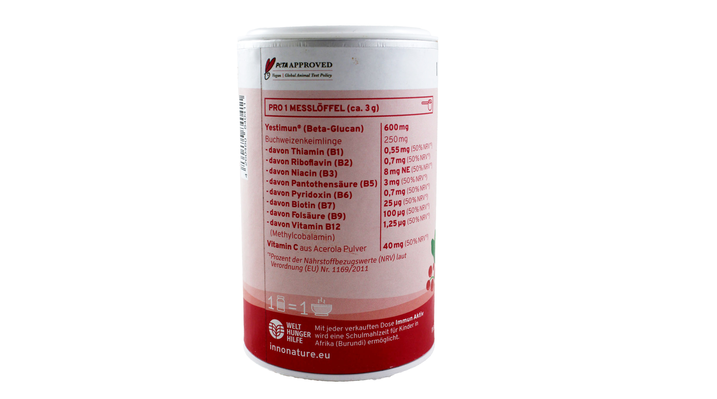 Zusätzlich sind der Fachredaktion von Lebensmittelklarheit weitere Kennzeichnungsmängel aufgefallen: Unter anderem wird Beta-Glucan als „Yestimun®“ bei den Nährstoffen aufgeführt. Der Name lässt einen Wirkstoff für das Immunsystem erwarten. Tatsächlich wurden Aussagen zum Immunsystem für Beta-Glucan und speziell zu Yestimun® von der EFSA abgelehnt.