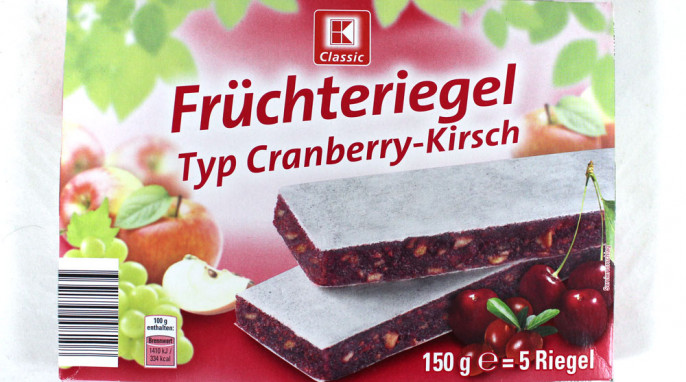 Verbraucher können jedoch aufgrund des Produktnamens und der naturgetreuen Abbildung auf der Schauseite einen Früchteriegel mit einem angemessenen Anteil an Cranberrys und Kirschen erwarten. Stattdessen ist das Produkt mit Rote-Bete-Saft gefärbt und enthält natürliches Aroma.