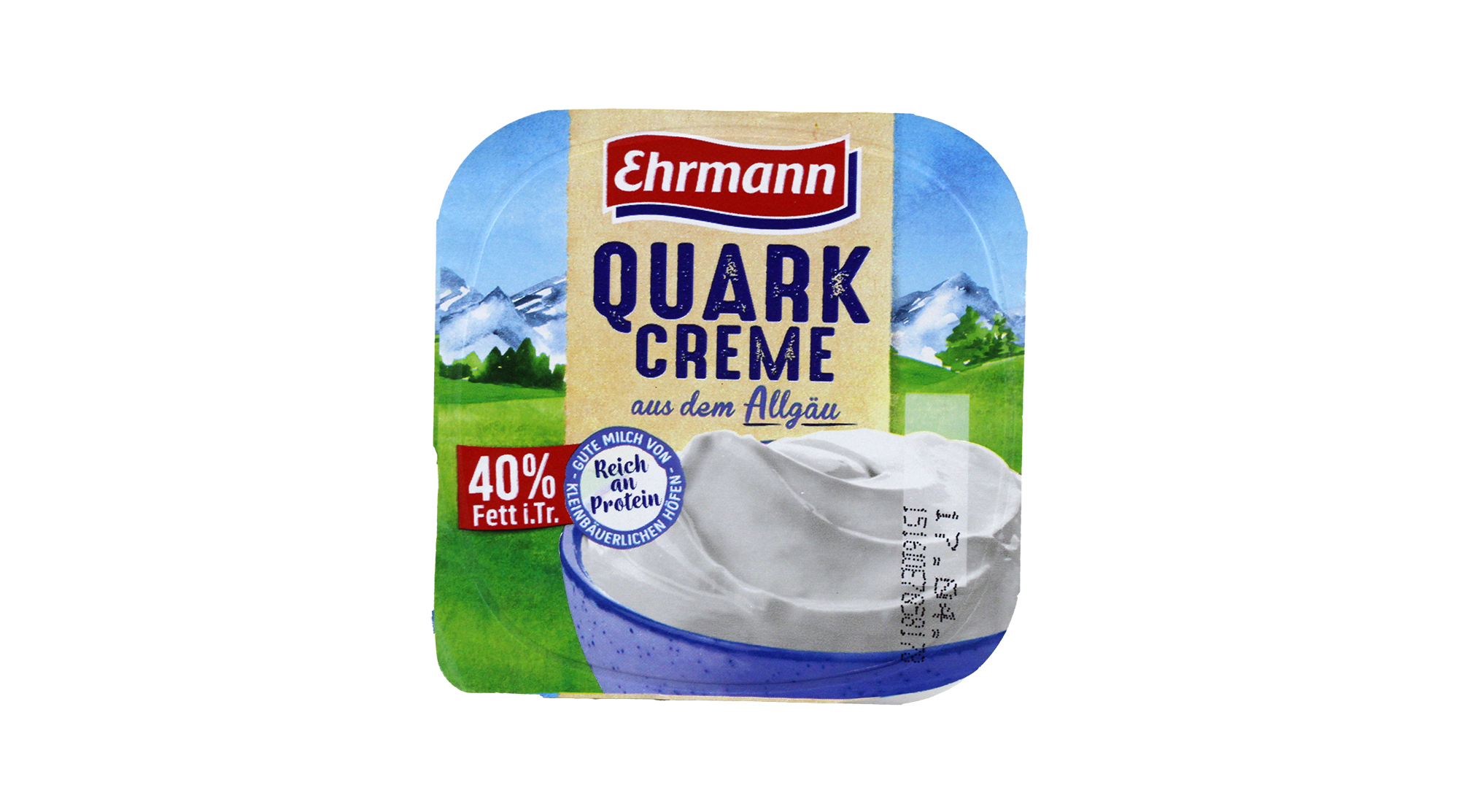 Die Firma Ehrmann nennt das Produkt „Quark Creme“. Den Wortbestandteil „Quark“ hebt Ehrmann durch die Schriftgröße hervor. Laut Bezeichnung auf der Becherseite handelt es sich um einen „Frischkäse, 40 % i. Tr.“. Der Text darunter beschreibt das Produkt als „cremige und proteinreiche Frischkäsespezialität“. Eine Zutatenliste ist auf der Verpackung nicht abgedruckt.