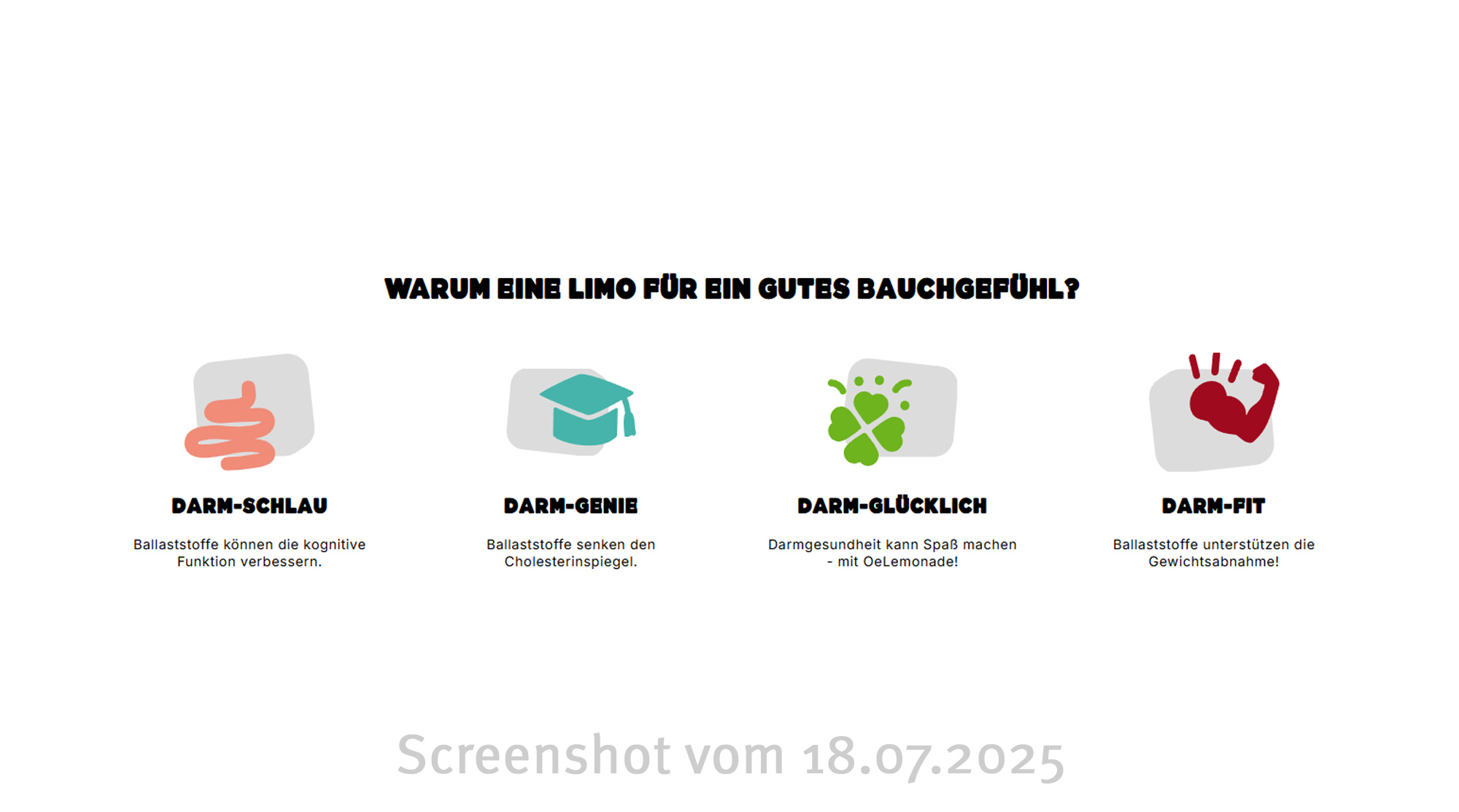 Auf die Frage „Warum eine Limo für ein gutes Bauchgefühl?“ folgen Aussagen wie: