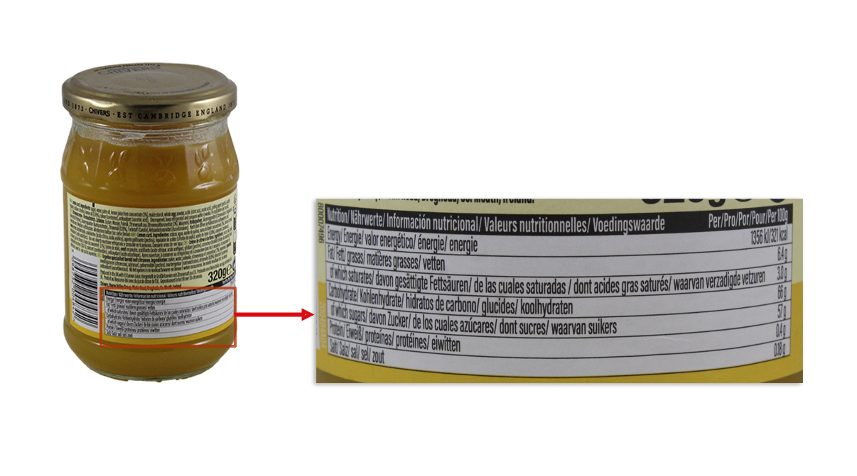 Zusätzlich ist Lebensmittelklarheit aufgefallen, dass die Schrift auf der Rückseite des Glases schlecht lesbar ist. Beispielsweise ist die Zutatenliste aufgrund der verwendeten Schriftart und der Darstellung in mehreren Sprachen kaum zu entziffern.