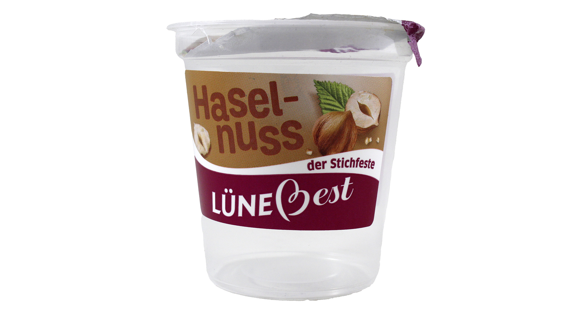Der Lünebest Joghurt Haselnuss hat auf dem Deckel ganze Haselnüsse abgebildet. In der Zutatenliste sind lediglich 1,8 % Haselnussmark enthalten. Zum Färben wird meiner Meinung nach Kakao und Caramel eingesetzt. Das empfinde ich als Verbrauchertäuschung.